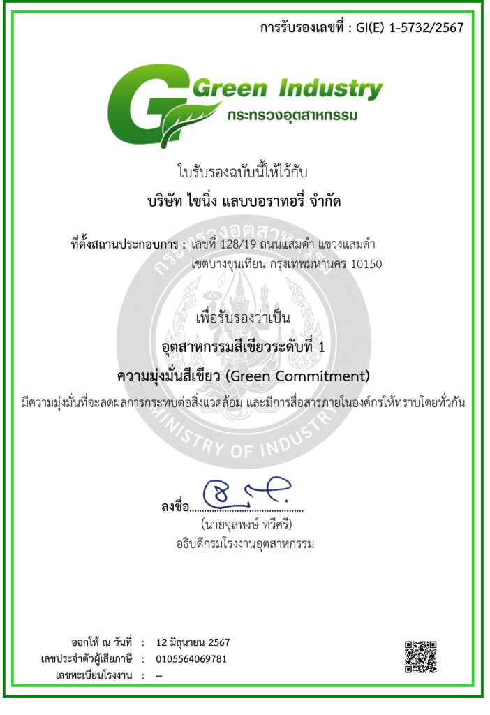 โรงงานชายนิ่ง แล็บ ได้รับการรับรองจากสถาบัน BSI (British Standards Institution) ภายใต้มาตรฐาน